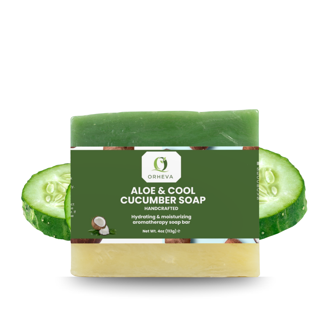 Our Aloe & Cool Cucumber Soap deeply hydrates skin and provides a cooling sensation to soothe irritation, offering a gentle aromatherapy cleanse that calms & refreshes the senses while it promotes softness.